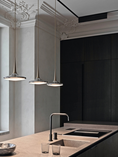 «Основной задачей нашей студии всегда было создание интерьеров вне времени, — рассказывает Анастасия Горбачева. — И когда заказчица пришла к нам (по рекомендации), оказалось, что во многом наши взгляды совпадают. Обладая большой насмотренностью и отменным вкусом, она точно знала, чего хотела: особенный интерьер, не похожий на яркую картинку из соцсетей». В поисках индивидуального звучания пространства хозяйка и дизайнер начали изучать разные интерьеры, в том числе салонов мебели и света, ресторанов. «В одном из салонов мебели, на Конюшенной, мы увидели замечательную старинную лепнину, — рассказывает Анастасия, — ее‑то мы и взяли за основу, разрабатывая рисунок карниза в главной зоне квартиры. Было принято решение сделать в гостиной объемный, нарядный, «исторический» карниз. При этом, чтобы соблюсти баланс, мы не стали перегружать стены декором. У стен, мебели, светильников лаконичные, выверенные формы». Лепнину удачно дополняет декоративная штукатурка и панели из шпона дерева. На таком фоне особенно эффектно смотрятся дизайнерские мебель и свет.